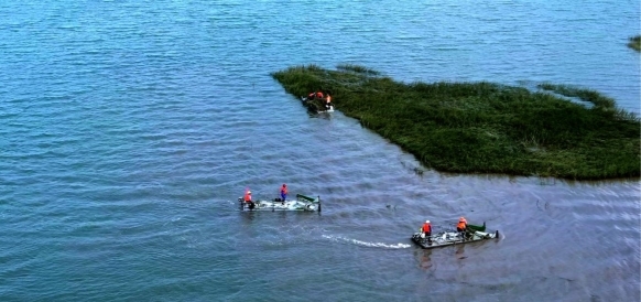 项目负责人王振兴带领团队在滩涂边立下“责任田”:施工区分块分段。深夜的地图前,32次方案研讨,泥水里卷起的裤脚,浸透汗水的工装……他们用“关键时刻站得出来”的信念,啃下了1648.86万平方米互花米草清除的“硬骨头”。
