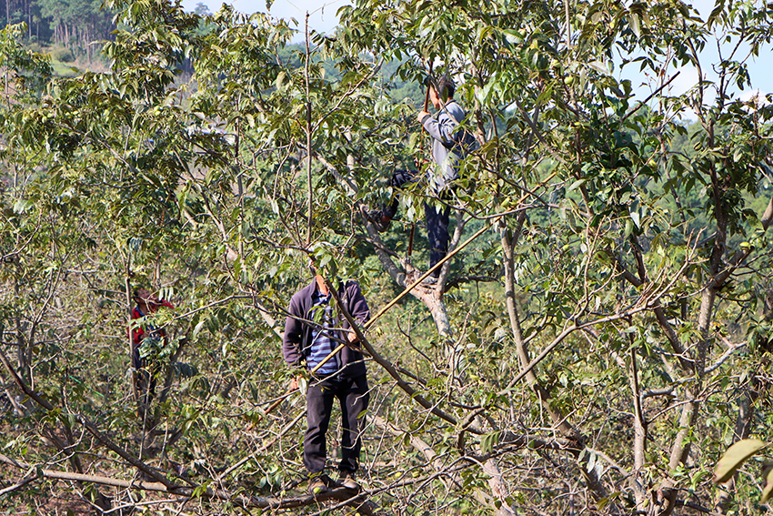 “我们云南种薄壳山核桃有特殊的优势,光照条件好,果实品质很好,云南的果子在全国都非常有名。”南京林业大学教授彭方仁在测产现场表示。