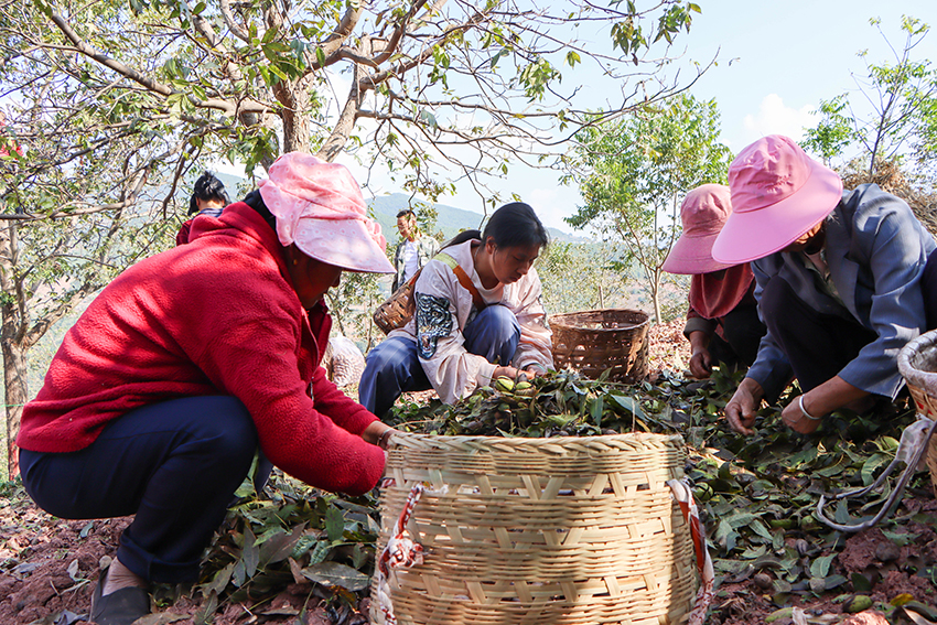 11月初,走进漾濞县瓦厂乡瓦厂村第九村民小组测产示范基地内,随着竹竿的敲打,核桃噼里啪啦的掉落声响彻林间,现场采收测产活动也拉开帷幕。果农们挎着竹篮、背着背篓,三五成群地围在一起,熟练地将地上的核桃拾进篮子里。一时间,树上、地上到处都是劳作的身影,欢笑声伴着核桃的落地声奏响了一首欢快的“丰收曲”。